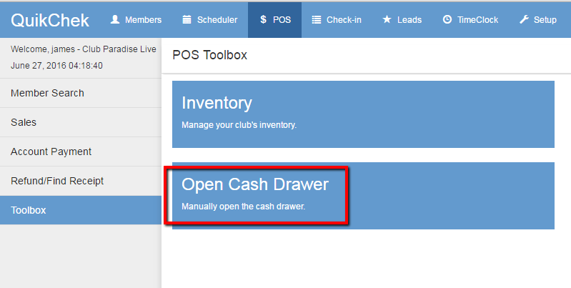 2. Open drawer manually from POS>>Toolbox