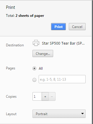 2. If you don't wish to use it as your default printer, please set as the destination printer when printing a receipt. Refer to the image below: