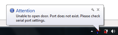 "Unable to open door. Port does not exist" error after logging in the the barcode reader applet