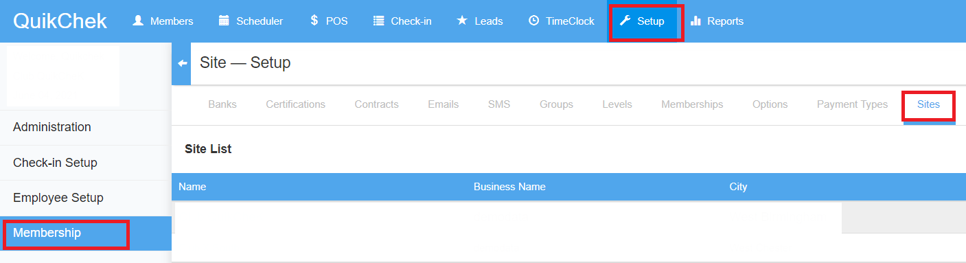 1. Please click Setup and click Membership on the left side. Then click Sites.