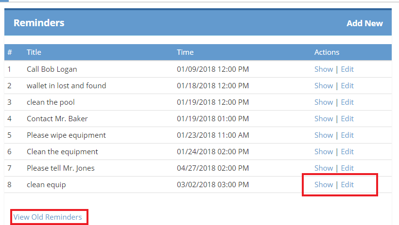 To view a reminder, simply click the Show link. Click the View old reminders link to display more past reminders. Clik the same link to restore the New reminders display