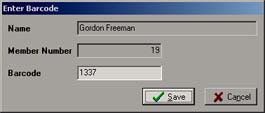 4. Swipe the membership card, and the barcode will be entered into the barcode field. Click Save.